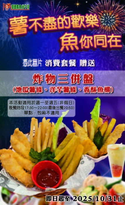 2025/10/01~10/31 止 平日晚餐時段,出示上方圖片 同桌同享優惠!