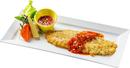 新鮮魴魚及紅、黃甜椒佐以番茄醬汁,再以進口乳酪焗烤,盡享義大利美食