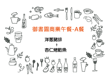本週A套餐內容為洋蔥豬排+杏仁烤魴魚